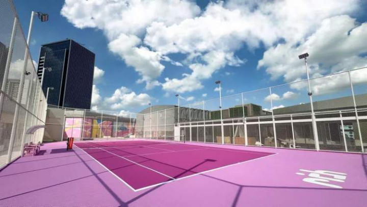 例如,位于商场5楼的壹天聚乐部以复合社交娱乐为卖点,并以“平行地球”主题装置复刻凯旋门、自由女神像、金字塔等全球地标场景,形成适合拍照传播的室内景观。同层的瑞趣网球中心则以“纯露天粉色网球场”成为新的城市打卡点。与健身、桌球、茶饮等业态共同构成的“垂直活力社区”,让商场空间不再只是购物场所,而逐渐具备公共文化空间的属性。